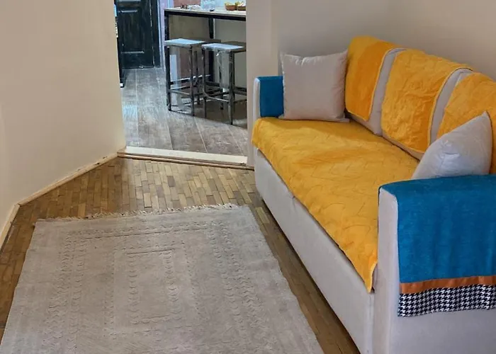 Featuring a writing table, Studio Near Airport Apartment has a television, an ironing set, and amenities such as climate control. Beds fitted with non-allergenic pillows are at guests' disposal. A bathroom has a bathtub, a walk-in shower, and a separate toilet, as well as towels and slippers.